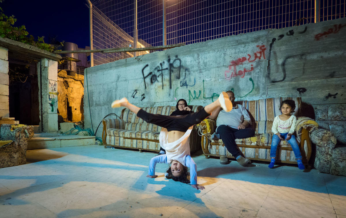 Wracając z muru, który zrobił na nas wstrząsające wrażenie… Jeszcze zachodziło słońce, ta surowość, ten przekaz, który jest na murach, te hasła, historie ludzi, których Izraelici niefajnie traktują… Przemierzałyśmy to miejsce w ciszy, próbując fotografować. Wracając, zobaczyłam dzieci bawiące się na takim obleśnym podwórku – pod częścią muru. Usiłowałam je sfotografować ukradkiem. A one zeszły na dół. Jak zobaczyły, że mam aparat, dosłownie mnie obsiadły. Podawały ręce, cieszyły się, dotykały. Próbowałam z nimi rozmawiać – one po arabsku, ja, oczywiście, po polsku. Mieliśmy zabawę i nagle przyszedł starszy, otyły mężczyzna. Myślę sobie: cholera, będą problemy. A on ustawił te dzieci na murze i kazał im pozować, żebym mogła spokojnie zrobić zdjęcia. A potem powiedział: chodź za mną. Dzieci wzięły mnie za ręce i zaczęły prowadzić. Wtedy Kaśka się ocknęła: dokąd idziesz, co ty robisz? Mówię: nie wiem, mamy tam iść. Dzień wcześniej Kaśka miała takie marzenie, żeby spróbować domowej kuchni i zobaczyć jak mieszkają prawdziwi ludzie…