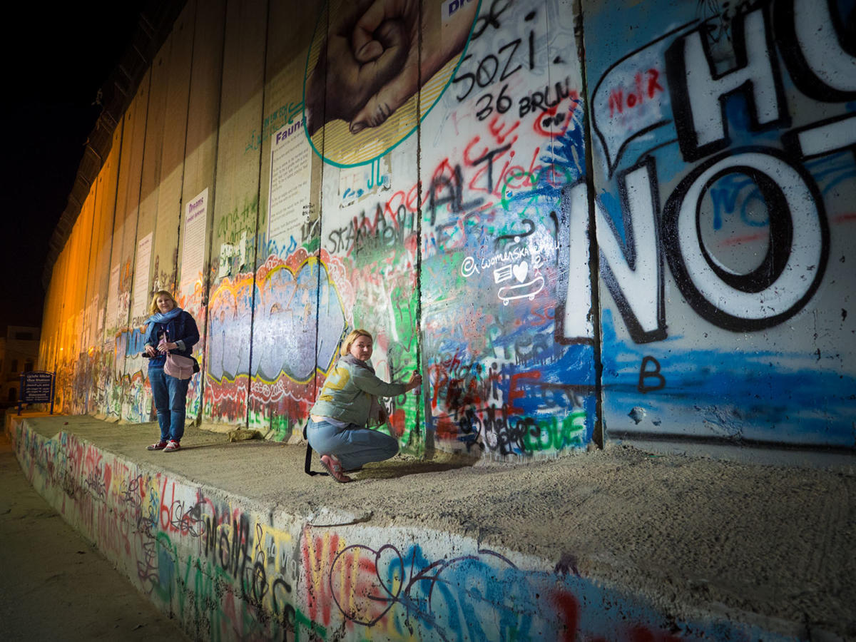Wszyscy zapewniają, że bardzo nas lubią, ale ja mam wątpliwości, dlatego że Polacy niewiele wydają i niewielu ich się pojawia w miejscach, gdzie można coś kupić. A ci ludzie utrzymują się dzięki turystom. Tam właściwie nie ma nic. Dla nich błogosławieństwem było pojawienie się Banksy’ego, który swoimi graficznymi manifestami zwrócił uwagę na problem odgradzania się Izraela od Palestyny wysokim murem zakończonym drutem kolczastym. Teraz tak naprawdę daje tym ludziom pracę. Graffiti z murów pojawia się na koszulkach, kartkach, torbach i widać, że wiele rodzin z tego się utrzymuje. Starałyśmy się chociaż w ten sposób tym ludziom pomóc.
